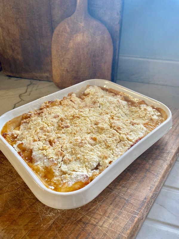 Almost identical to the recipe I watched my mom prepare growing up. It’s a staple for my kitchen now. Our favorite fruits to use are peaches and apricots together, and strawberries also make a great crumble.
